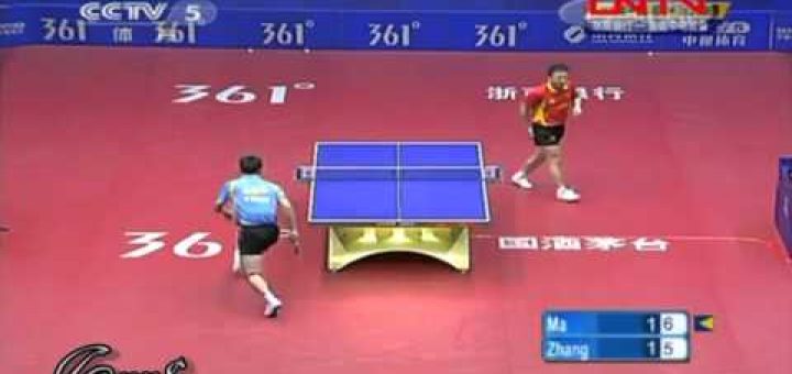 Un autre très bon service mais dans un autre genre ! Prendre une initiative solide sur ce service est très problématique. Il s’agit d’un service deux rebonds, appelé aussi «service infirmerie », que Ma Lin exécute à la perfection ! (Un service deux rebonds est un service où le deuxième rebond vient « fleurter » avec la ligne blanche ce qui entraîne une hésitation du relanceur...
